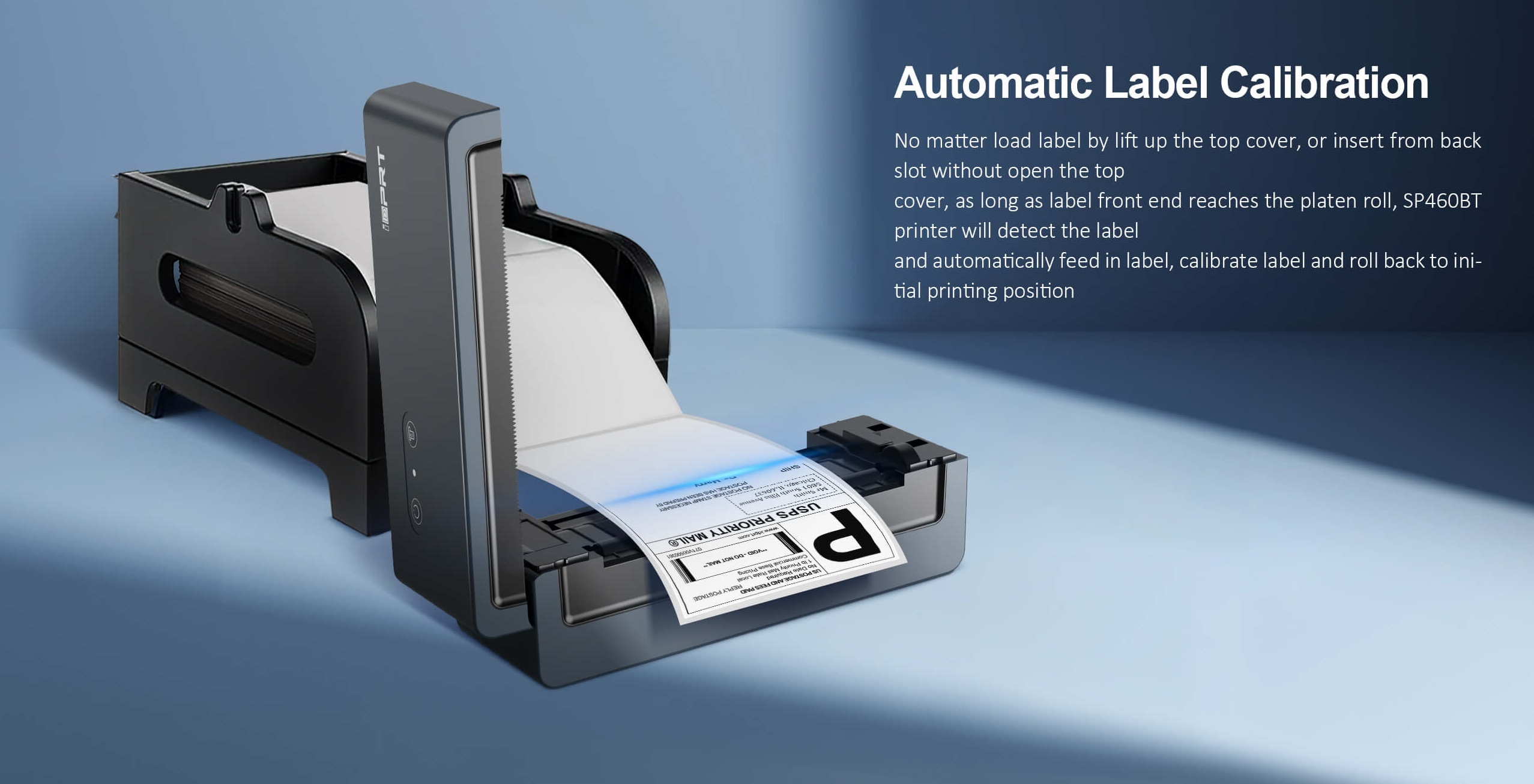 Máy in mã vạch SP460BT. Máy in mã vạch truyền nhiệt trực tiếp khổ in 110mm. Khổ in thực tế 108mm. Độ phân giải 203dpi. Tốc độ 127 mm / giây. Kết nối: USB+BLUETOOTH. Chuyên dành in tem sàn TMĐT trên điện thoại với tốc độ nhanh.